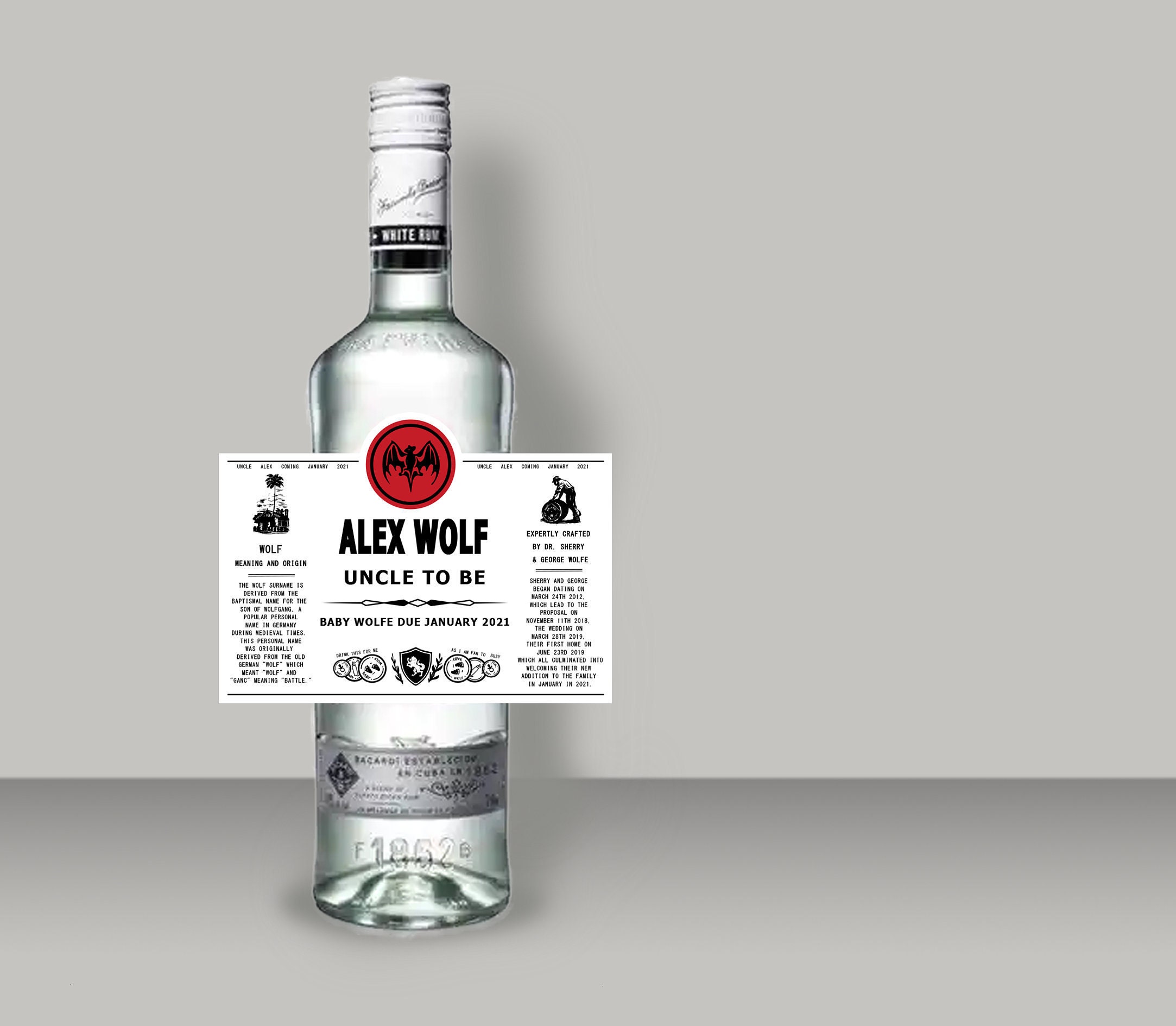 Personalised Bacardi White Rum Bottle Alcohol Label ... The label is printed on high quality glossy self adhesive paper. Perfect to add that extra special touch to your wine or champagne bottle as a gift. Simply soak ...
