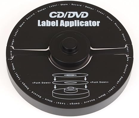 Merax B00NY4YA2I EZ Label: CD/DVD Label Applicator (40mm Hole, CD/DVD ... For its primary function, the Merax Label Applicator valiantly holds discs for the application of CD/DVD/Blu-ray labels. The other half of a label applicator's job is to secure discs so that the user can write on select discs with a marker. Thus the center spindle must be able to sink and rise.