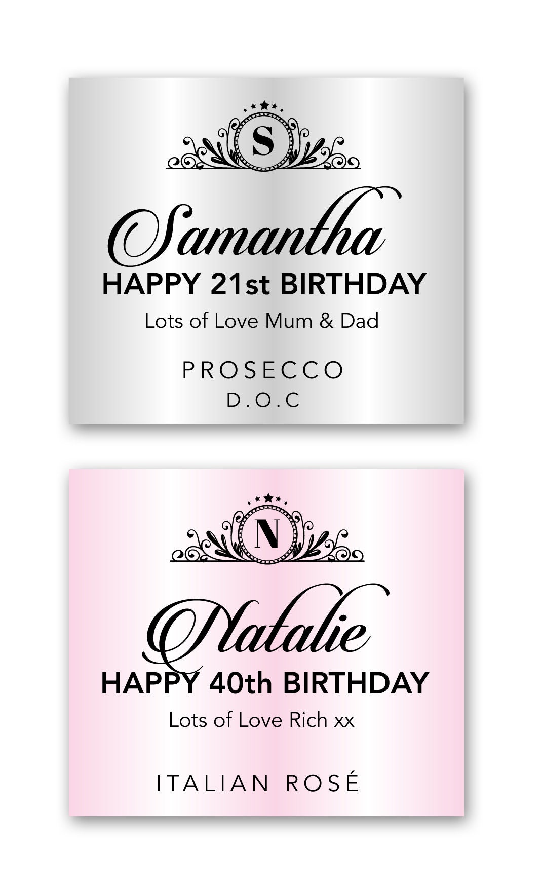 Personalised Prosecco Bottle Label Any Name Birthday Any Personalised Prosecco Bottle Label, Any Name, Birthday, Any Occasion, White or Rosé. Add this label to the 75cl bottle type shown, as a great gift. Label size ...