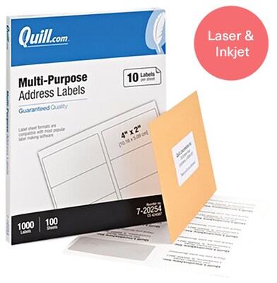Quill Brand® Laser/Inkjet Address Labels, 2" x 4", White, 1,000 Labels (Compare to Avery 5163, 5263, 5444 & 8163)